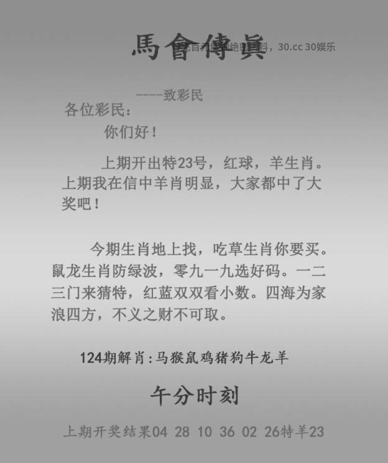 | 126期:☆天地中特☆【天肖】开:兔39中 |